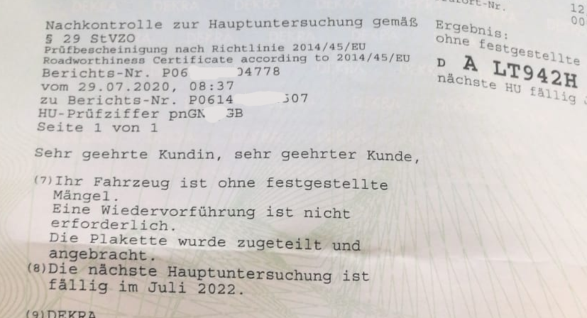 Anfangs gab´s erhebliche Mängel; Rückfahrscheinwerfer, Kennzeichenbeleuchtung, Nebelschlußleuchte, Bremse hinten rechts.
